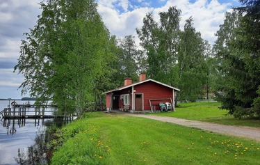 Puusauna 4 hlöä, kantovesi ja muuripata, peseytyminen saunassa. Erillinen pukuhuone. Loivasti syvenevä hiekkaranta ja laituri. Kompostikäymälä.